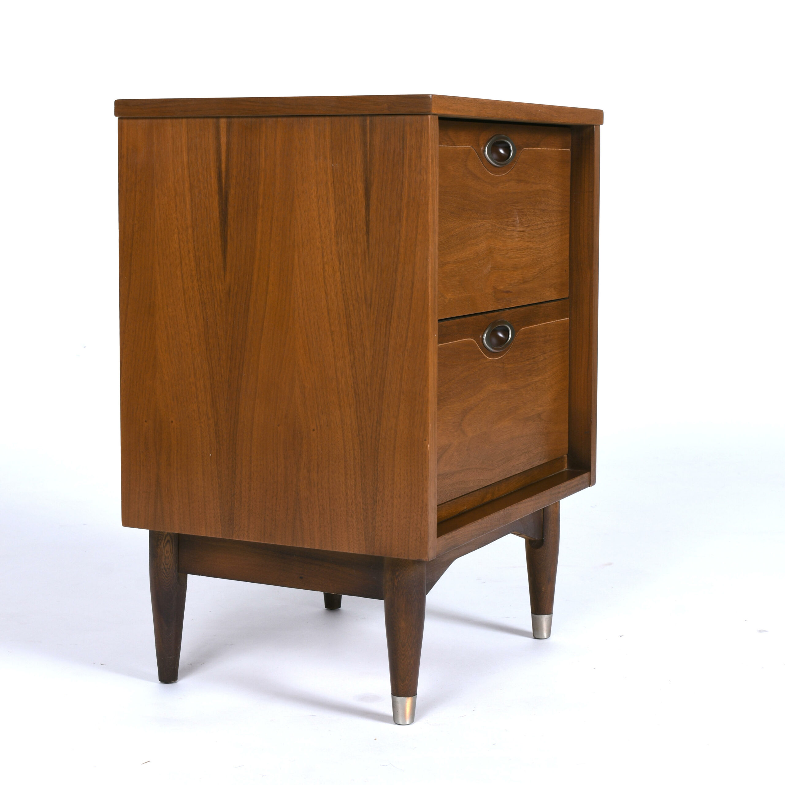 Mid Century Modern Hooker Mainline Two Drawer Walnut Nightstand